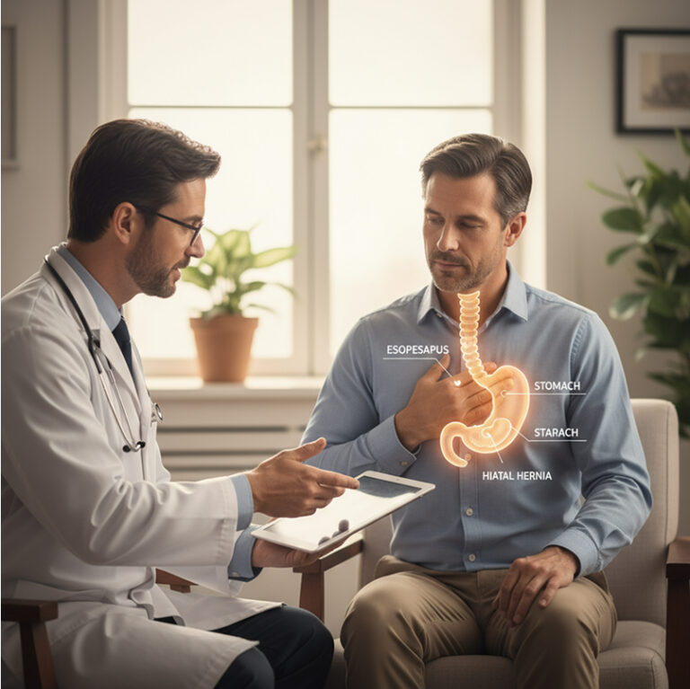 Procedimento para corrigir hérnias no diafragma que causam refluxo gastroesofágico intenso. Ajuda a reduzir azia, regurgitação e dor no peito.
